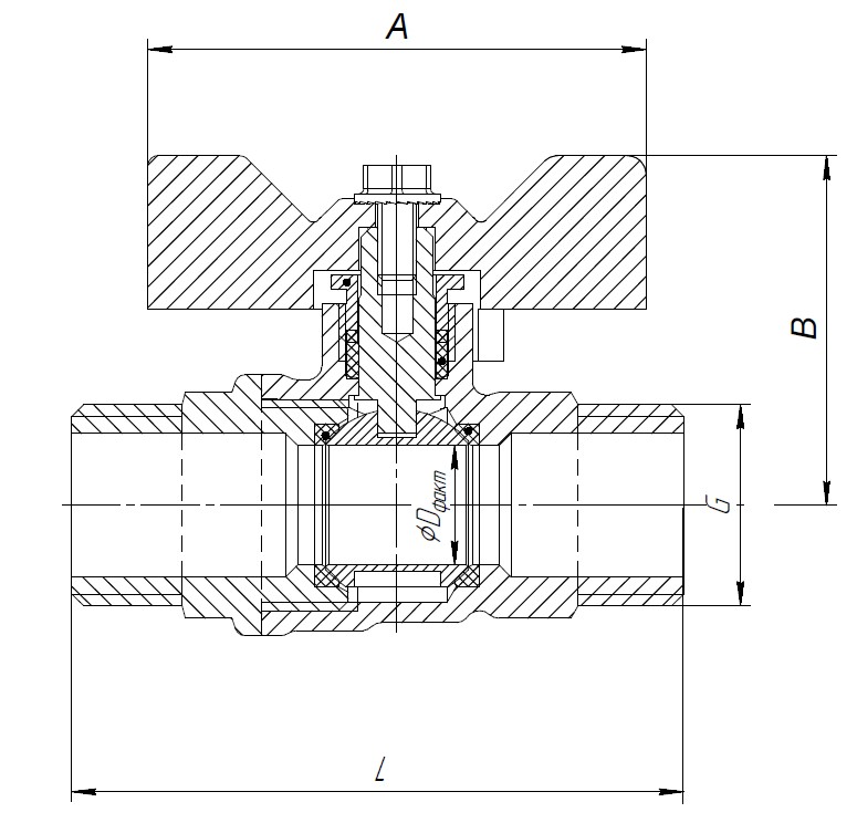 | Артикул | DN | PN | L | A | B | D | G | Масса, г | Коробка / шт | |