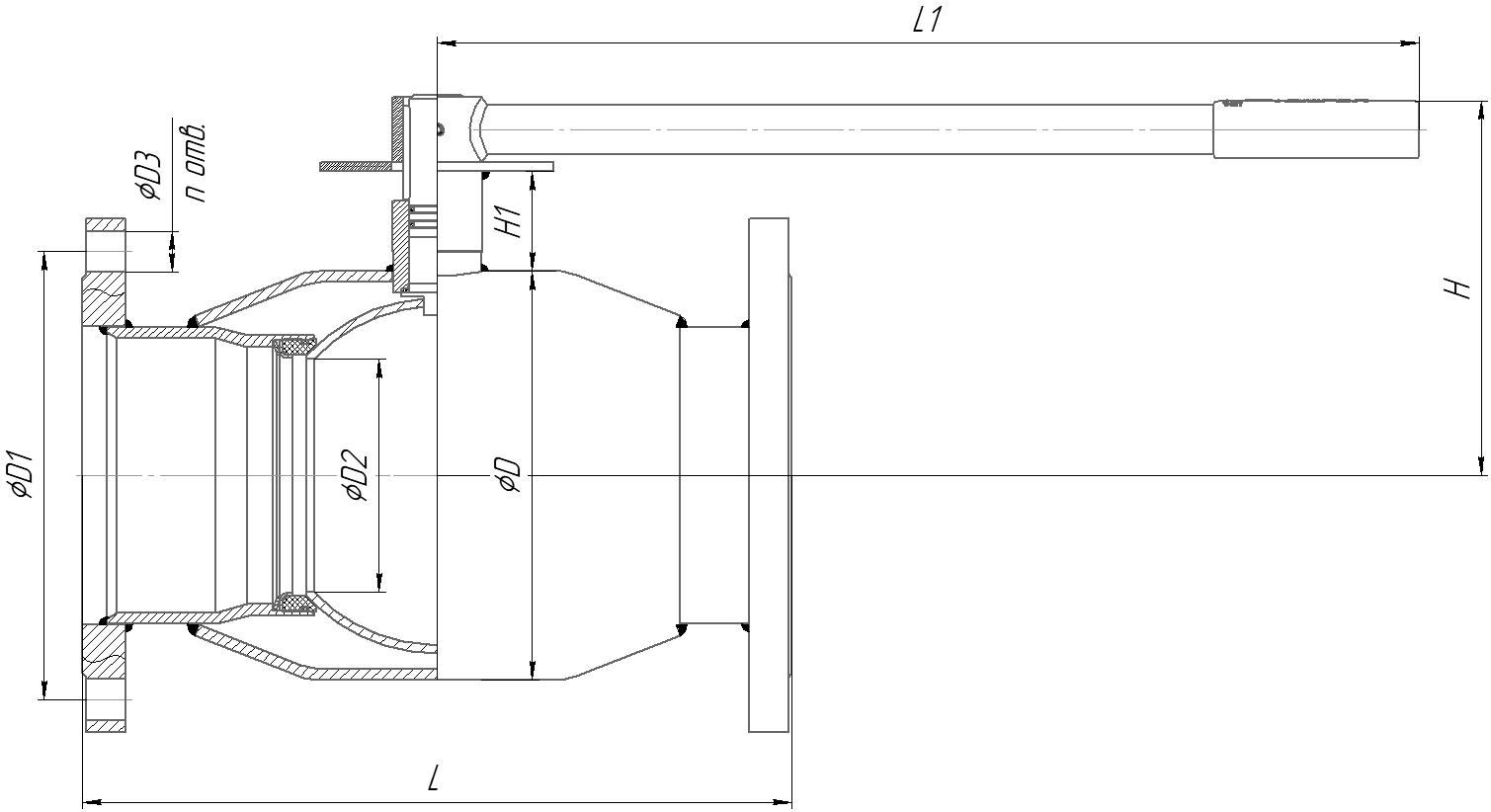 Артикул DN PN L L1 H H1 D D1 D2 D3 N OF HOLES Вес